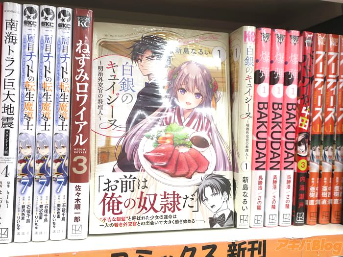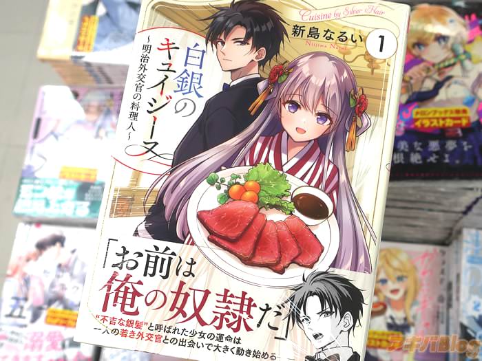 『白銀のキュイジーヌ』は、コミックナタリーによると『明治時代初期の長崎・出島で、銀色の髪を持つ少女・美鈴は“不吉な銀髪”と周りから忌み嫌われていた。ある日、遊郭に売り飛ばされそうになった美鈴は、外交官の真之に助けられる。美鈴の作る料理に興味を示した真之は、彼女を外交料理の世界へと導いていく』から始まるお話。