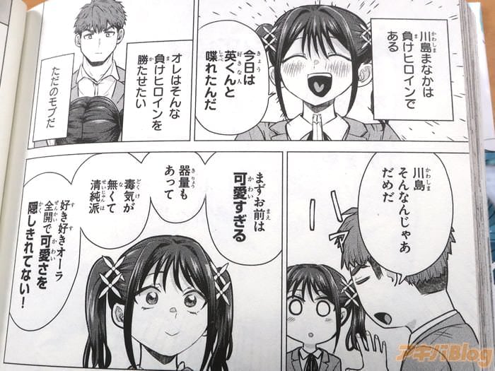 原作:那珂山みちる&作画:タツワイプ的「負けヒロインを勝たせたい!!」第1卷【AA】于7日发售に発売になった。漫画情報は『モブ主人公「木村」が、川島を勝ちヒロインへ導こうと奮闘』、裏表紙は『ピュアなヒロインをモブ主人公が導く応援ラブコメディ!』、『負けヒロインを勝ちヒロインへ!』などだった。